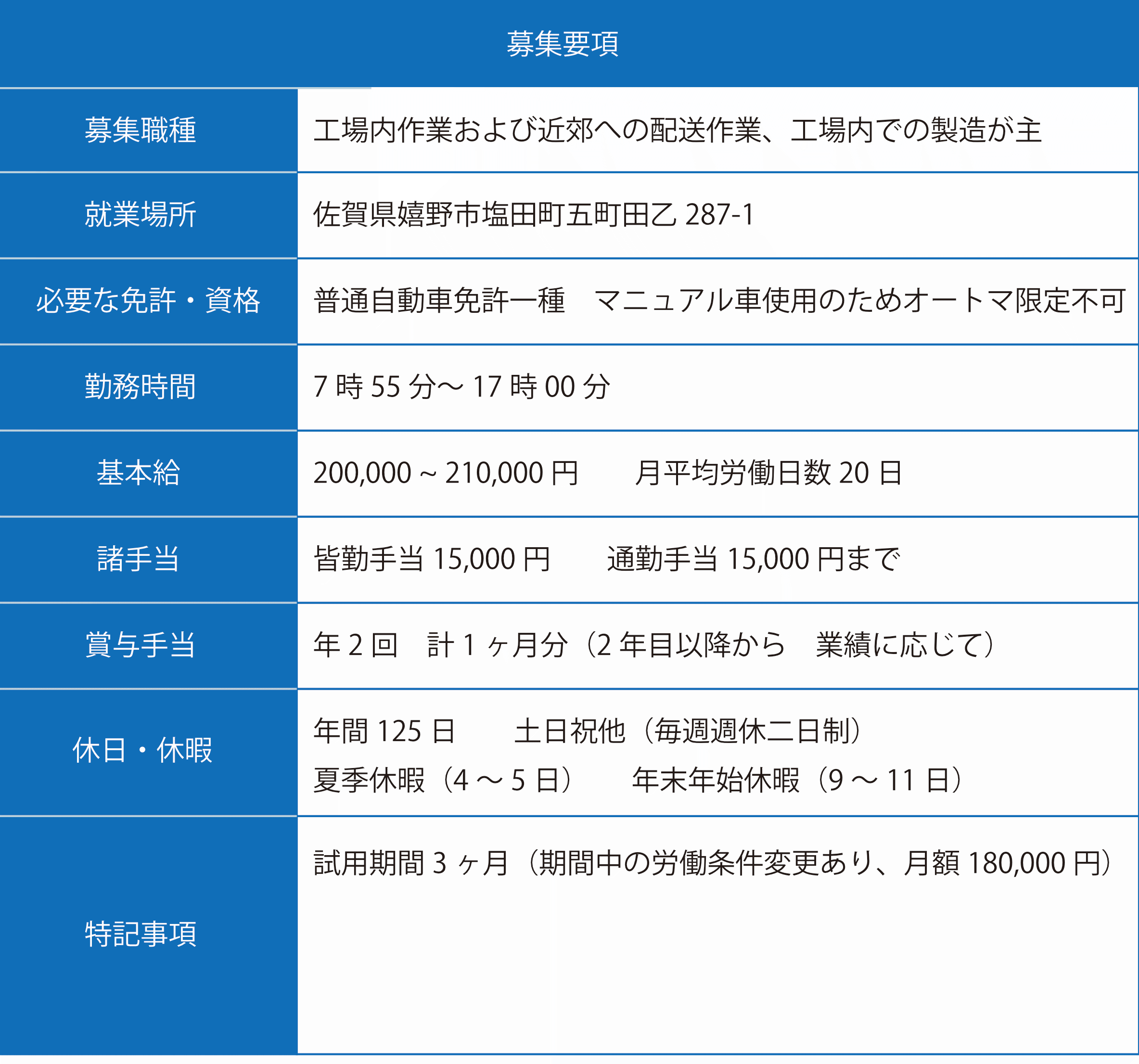 (入社後、フォークリフト運転技能講習を受講していただきます)